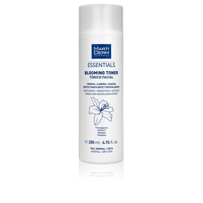 Le Tonique Visage Blooming de Martiderm fait partie de la collection Essentials. Sa texture fluide et légère le destine particulièrement aux peaux normales et sèches.