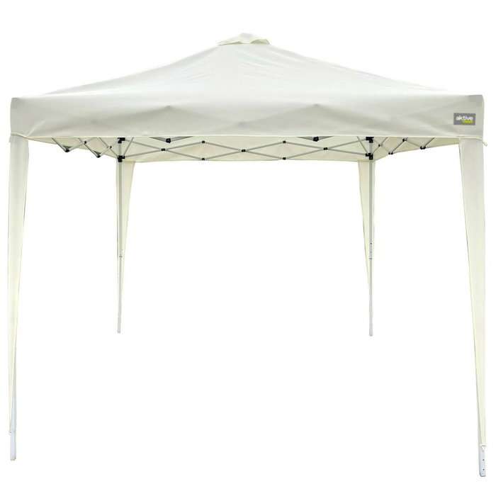 Le gazebo Max-Air de la marque Aktive est une structure pliable conçue pour offrir une solution pratique et résistante en extérieur. Avec des dimensions approximatives de 300 x 300 x 250 cm, ce gazebo propose une large surface couverte, idéale pour les réunions, célébrations ou moments de détente en plein air. Son assemblage associe un tissu de haute qualité à une structure robuste en acier, garantissant durabilité et stabilité face aux différentes conditions climatiques. Les couleurs blanc et beige s’intègrent harmonieusement dans les environnements extérieurs avec un style neutre et élégant, facilitant son adaptation à divers espaces et décors. Une caractéristique notable du modèle Max-Air est son design pliable, qui simplifie son rangement et son transport, le rendant particulièrement fonctionnel pour une installation temporaire ou modulable. De plus, il intègre une cheminée pratique qui ventile l’intérieur, améliorant le confort et évitant l’accumulation de fumée en cas d’utilisation d’un barbecue ou feu sous le gazebo. En résumé, ce gazebo allie dimensions, matériaux de qualité et design réfléchi pour offrir un espace protégé et polyvalent en extérieur, une solution adaptée pour une couverture efficace et confortable de votre terrasse ou jardin.
