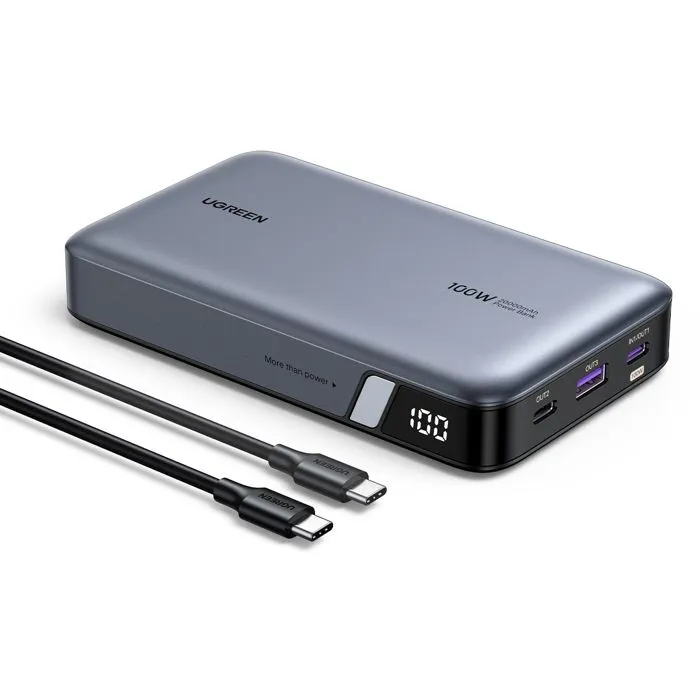 La batterie externe UGREEN 20,000 mAh 100W Version 2 est conçue pour fournir une puissance élevée et une charge ultra-rapide a vos appareils, y compris les ordinateurs portables compatibles USB-C PD. Son design gris robuste et élégant garantit durabilité et praticité, tandis que les protections intégrées contre la surcharge, les courts-circuits et la surchauffe assurent la sécurité de vos appareils. Avec cette batterie, vous bénéficiez d'une autonomie étendue et d'une recharge rapide fiable, idéale pour les professionnels et voyageurs exigeants.