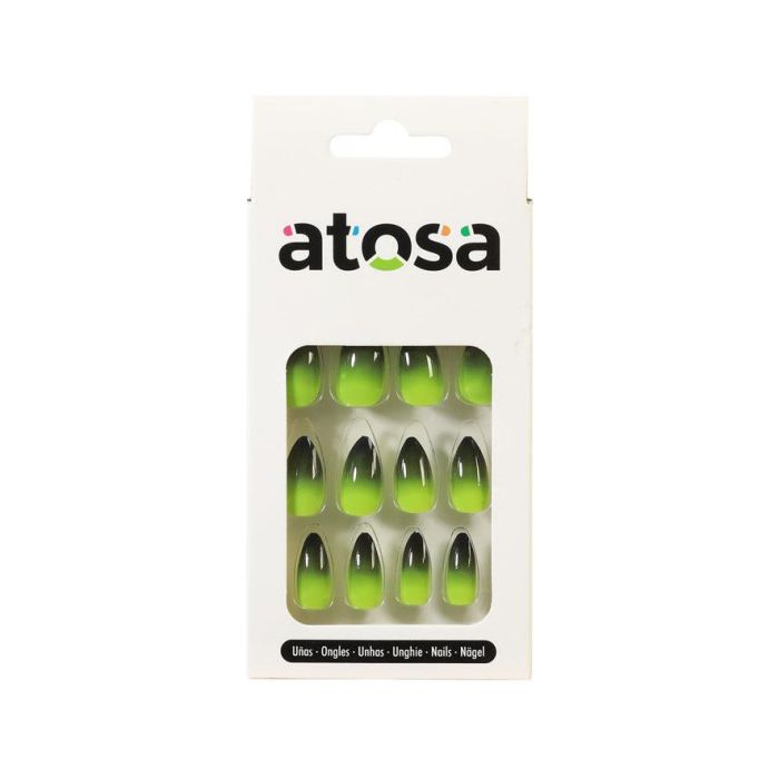 Ungles Postiches Vert Fluo et Noir Degrade Style Amande - Pour Halloween, Maquillage Artistique et Cosplay