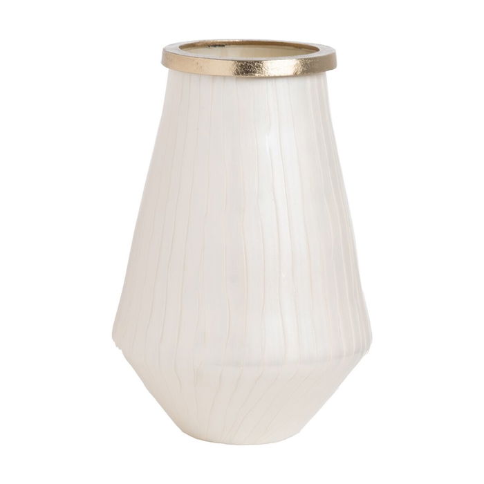 Vase Blanc Doré Aluminium Verre 25 x 25 x 39 cm