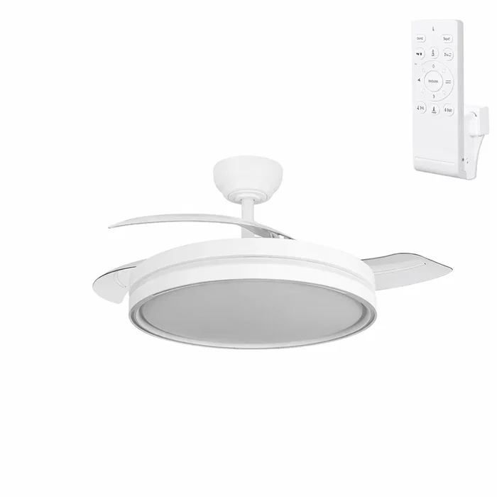 Ce ventilateur DC innovant est conçu pour un usage toute saison. Sa construction robuste associe du métal, de l'ABS et du polycarbonate pour une durabilité optimale. Il est proposé dans une élégante finition blanche.