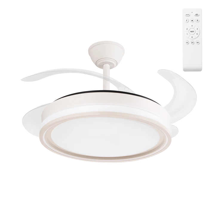 Ventilateur Bandido DC 59W Blanc 4 Aspas 107d Fonction Été-Hiver, 3 Températures de Lumière, Télécommande et Minuteur