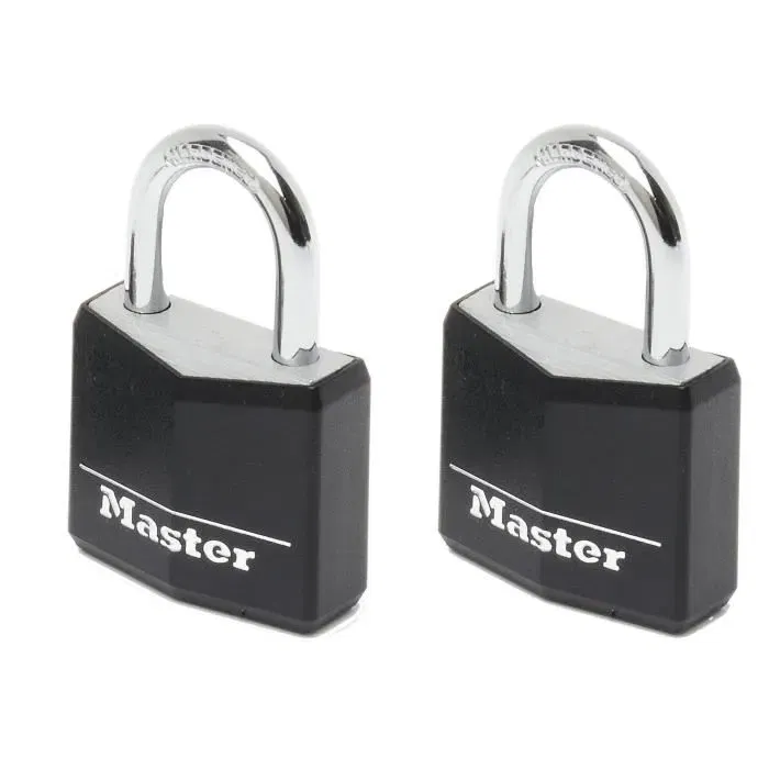 Master Lock - Lot de 2 cadenas en aluminium 30mm, anse acier cémenté 18mm, double verrouillage avec 2 clés, couverture vinyle noire