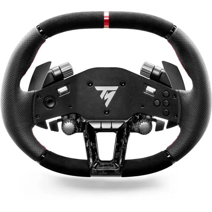 - Caractéristiques: Matériaux nobles : revêtement associant cuir et Alcantara®. Rigidité optimale et poids maitrisé : plastron en aluminium et carbone forgé Forme ovale inspirée des Hypercars surpuissantes. Compatible avec les bases Thrustmaster équipées du système de Quick Release next-gen.