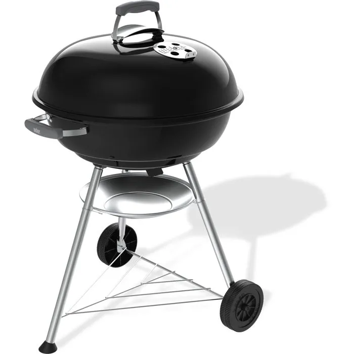 Weber Compact Kettle - Barbecue à Charbon Ø57 cm, Acier Émaillé, Grille de Cuisson Acier Chromé, Clapet d'Aération, 9 Couverts, Noir
