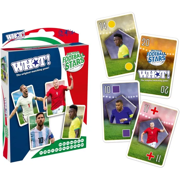 Winning Moves WHOT! World Football Stars - Jeu de société avec cartes spéciales et jokers - Pour 2 à 6 joueurs - Dès 5 ans