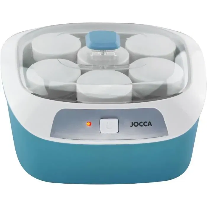 - Description du produit: Yaourtière - JOCCA - 1575 - 6 pots - Bleu et blanc - Volume maximum : 1,2 L - 220-240V ~ 50/60Hz - 20W - Contrôle automatique de la température pour plus de sécurité et d’économie d’énergie - Préparation de yaourt simple sans additifs artificiels - Avec interrupteur marche / arrêt, voyant d’alimentation - 6 pots en verre de 170 ml chacun - Les pots et les couvercles vont au lave-vaisselle.