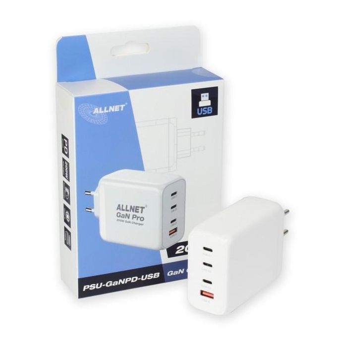 Z ALLNET Ersatznetzteil QC USB-C PD GaN Netzteil Power Supply200Watt 1x USB Typ-A QC 3x USB Typ-C**EU PLUG**