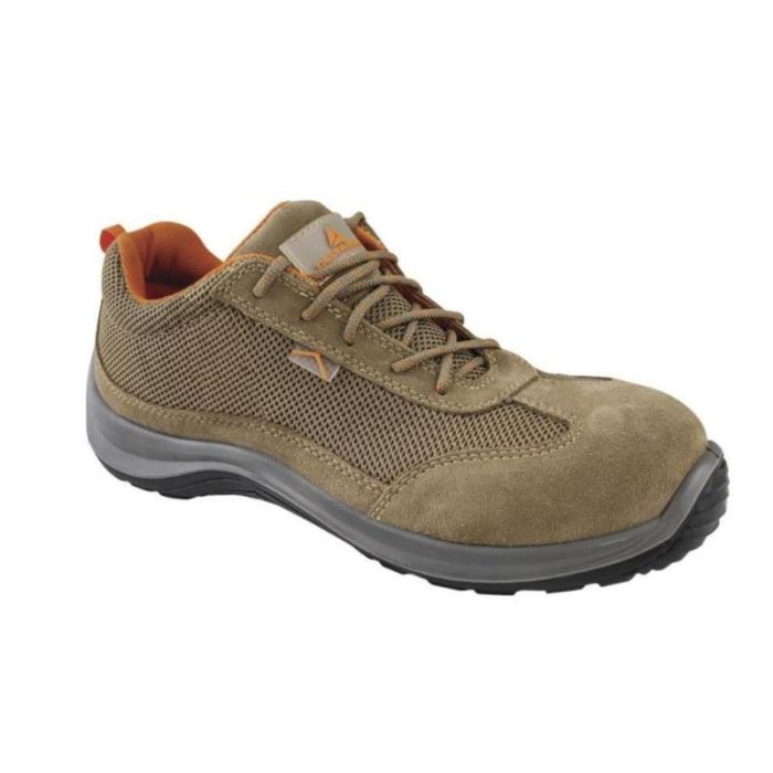 DELTA PLUS Chaussures de sécurité Asti Malla Serraje S1P, Embout et semelle anti-perforation non métalliques, Cuir sergé, Maille respirante, Beige, Pointure 47